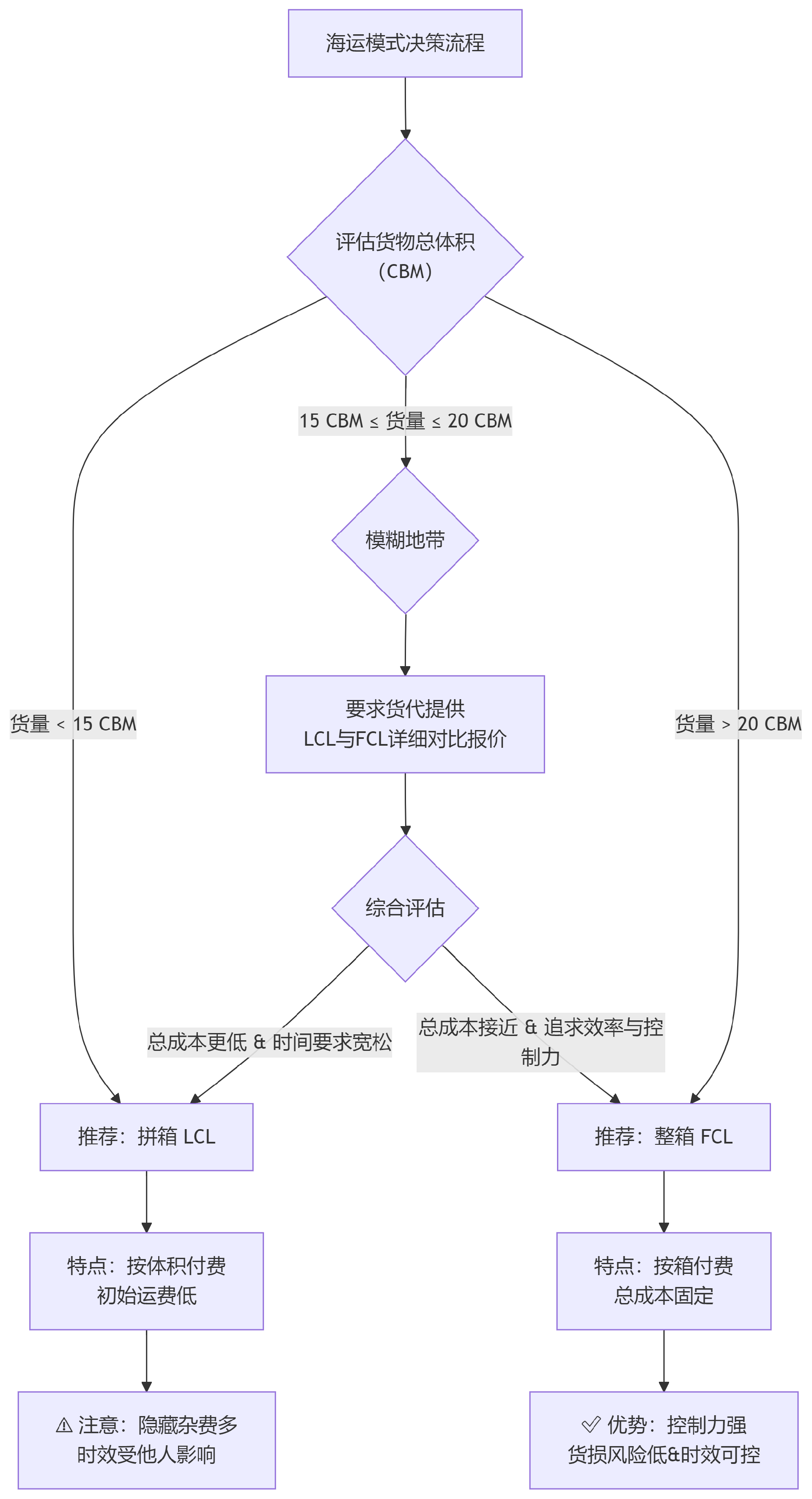 隐藏成本: 需注意目的港的拼箱拆箱费(LCL Fee)、提货手续费(Handling Fee) 等杂费可能较高,且由所有拼箱货主分摊,需提前向货代了解清楚。